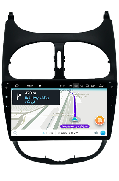 شما در مانیتور پژو 206 چندین مسیریاب دارید،انواع مسیریابهای آنلاین و آفلاین، با اتصال به اینترنت و استفاده از مسیریابهای آنلاین مانند WAZE شما از خلوت ترین مسیر راهنمایی خواهید شد