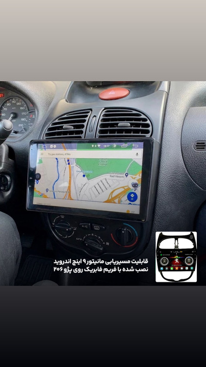 مانیتور ۱۰ اینچ پژو ۲۰۶ اندروید رام ۴ بافریم و دوربین دنده عقب